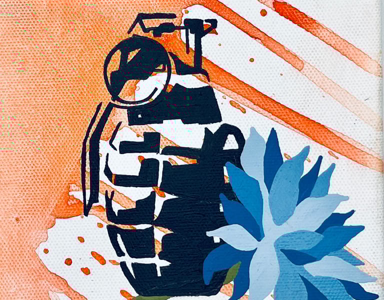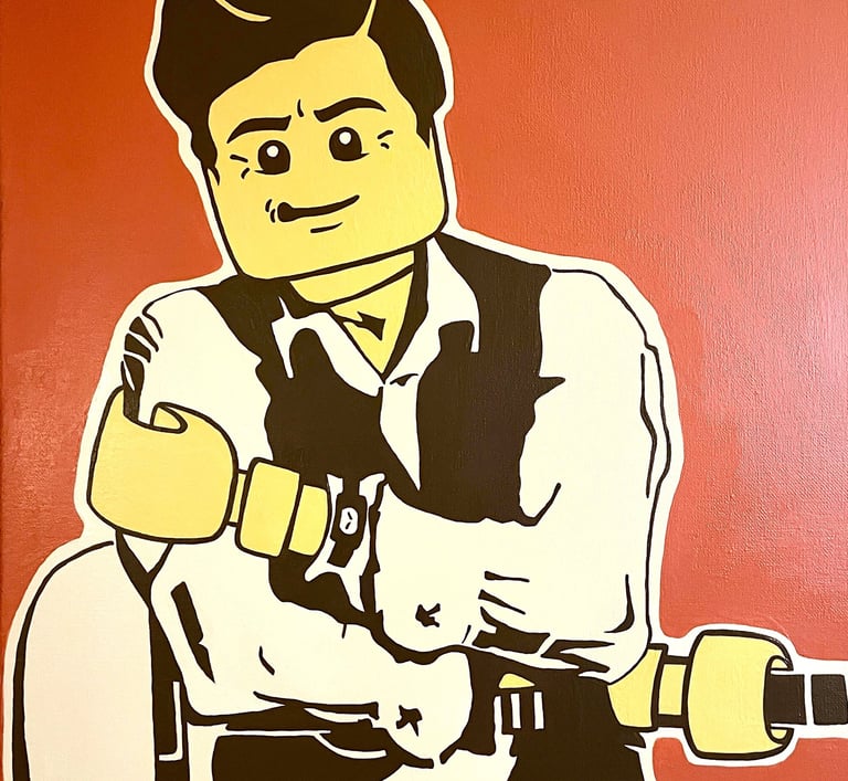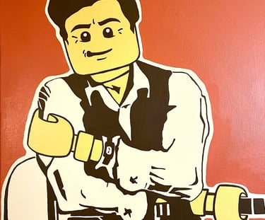 Just as film framed my imagination, my Latin heritage and family experiences gave me a foundation of color, symbolism, and resilience that continue to fuel my work. My paintings fuse these influences; cinema, culture, and lived memory into bold, graphic-based compositions. Though my aesthetic reflects the precision of printmaking, each original painting is created entirely by hand, no stencils and no digital applications; just an analog process that underscores both discipline and intimacy. With roots in screen printing, I use layered color fields, stark contrasts, and striking imagery to hold a moment in time. At once personal and universal, my work reimagines familiar iconography as reflections on identity, belonging, and the cultural narratives that shape us.